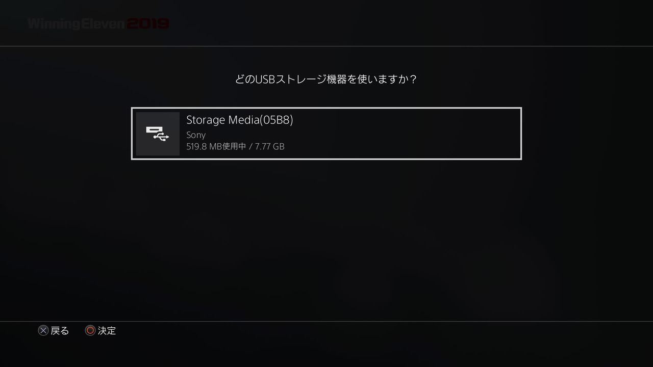 ⑤上の手順を終えた、USBをPS4に接続し、ウイイレを始める。