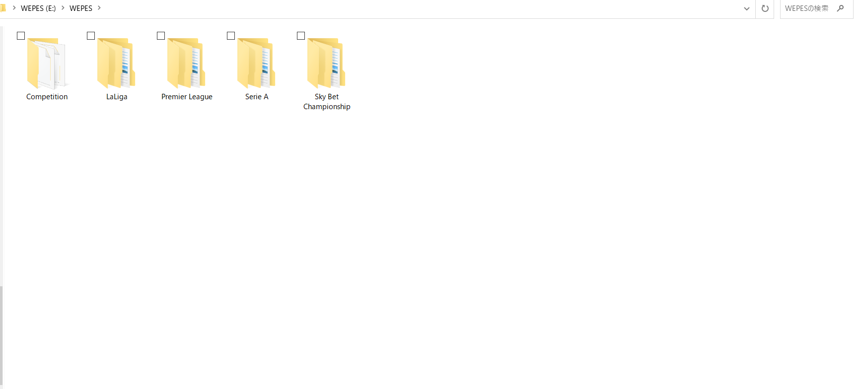 ※"WEPES"と書かれたフォルダの中には一般的に"competition"や"大会名(下でのLaLigaなど)"が含まれます。
